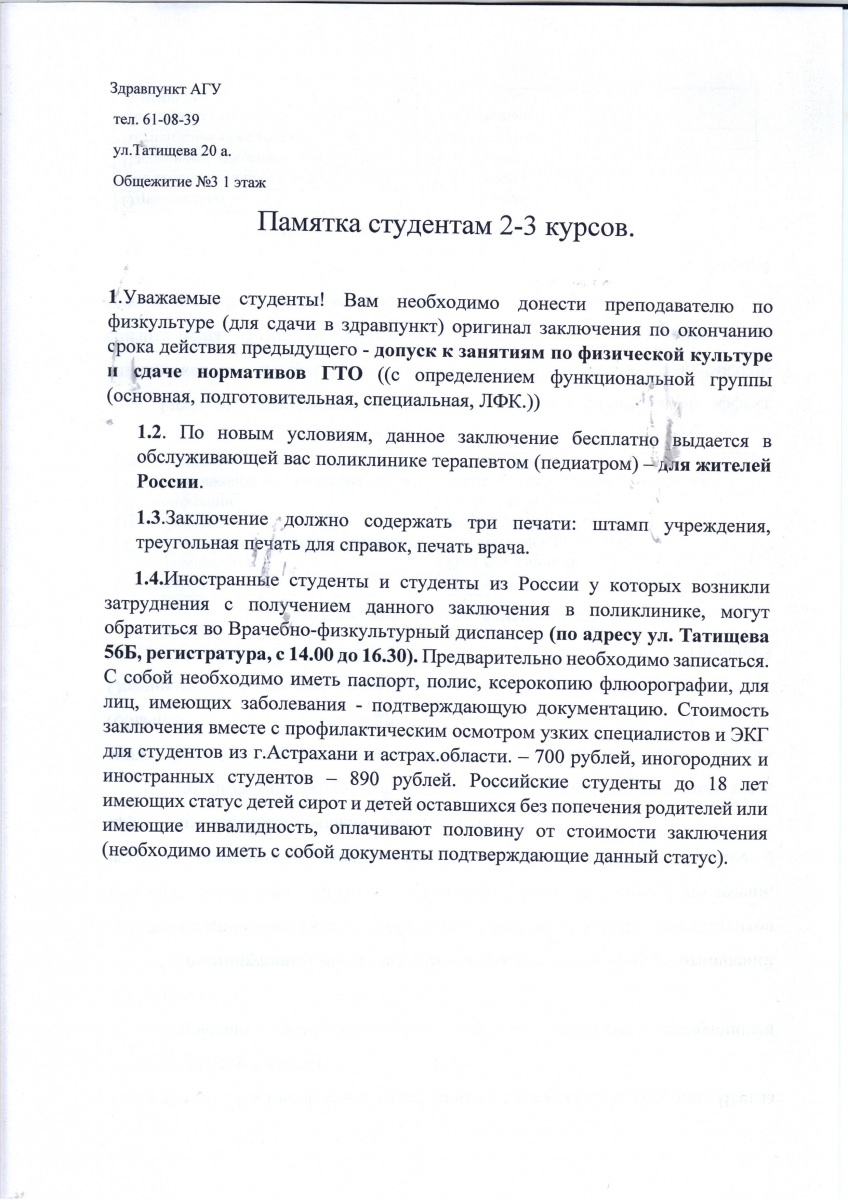 О прохождении медосмотра. Памятка студентам 2–3 курсов (с 1 сентября 2018 г.)