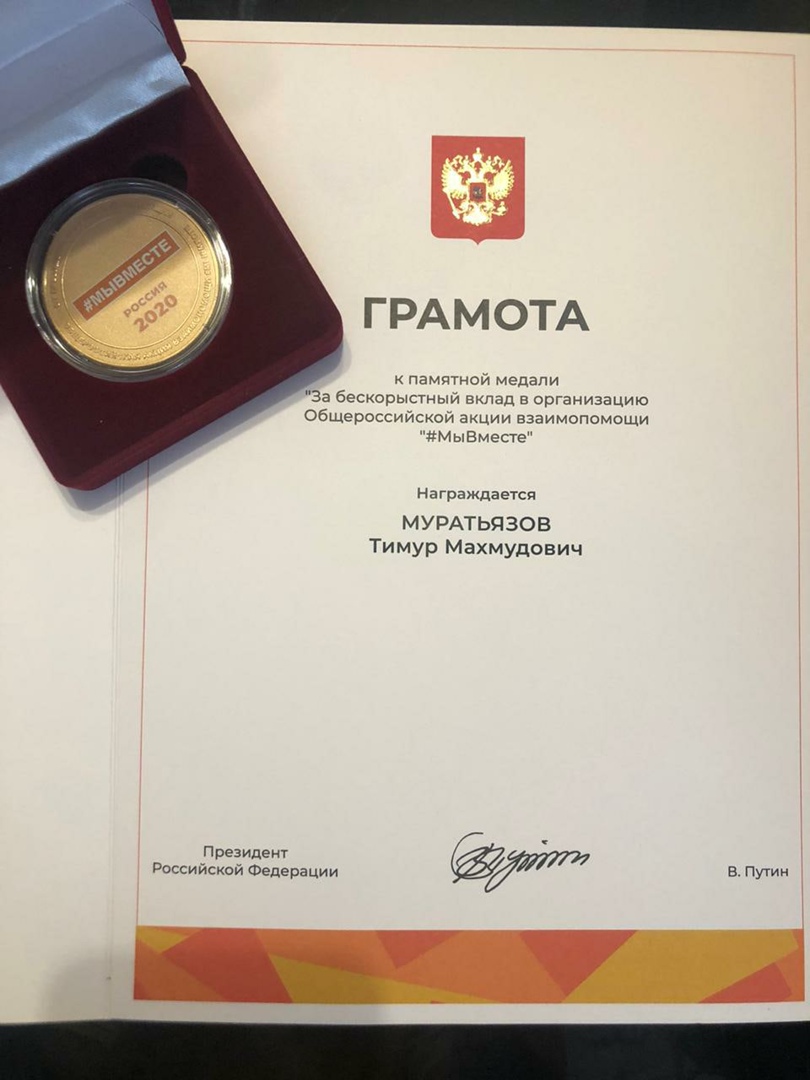 In June 2020, Russian President Vladimir Putin signed a regulation on establishment of commemorative medal “For Selfless Contribution to Organization of All-Russia Mutual-aid Campaign “We Are Together” due to its high social importance.