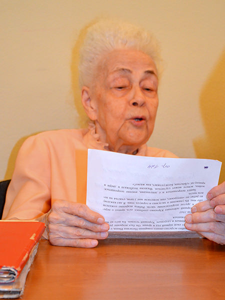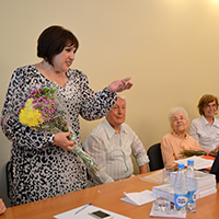 Opening the event, Dr. Lyudmila Kasyanova, Dean of the Department, has pointed out that attention towards war veterans must not be limited just with traditional holiday events in May; everyone should show profound respect towards people who served on the home front during World War Two wherever and whenever one meets such people. There are many creative people with an extraordinary biography among our veterans whose lives span decades of teaching experience at our University. No doubt Ms. Zinaida Dubinina is one of them; she graduated from our University in 1947 and worked as our faculty staff member for over 40 years.