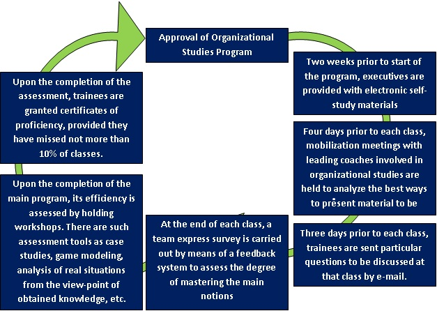 In September 2014, the organizational studies concerned the book by David E. Scharff “Object Relations Theory and Practice”. Our executives have learnt its categories and notions, as well as essence and specific features of this theory. The very process of organizational studies was standardized as per the following scheme: