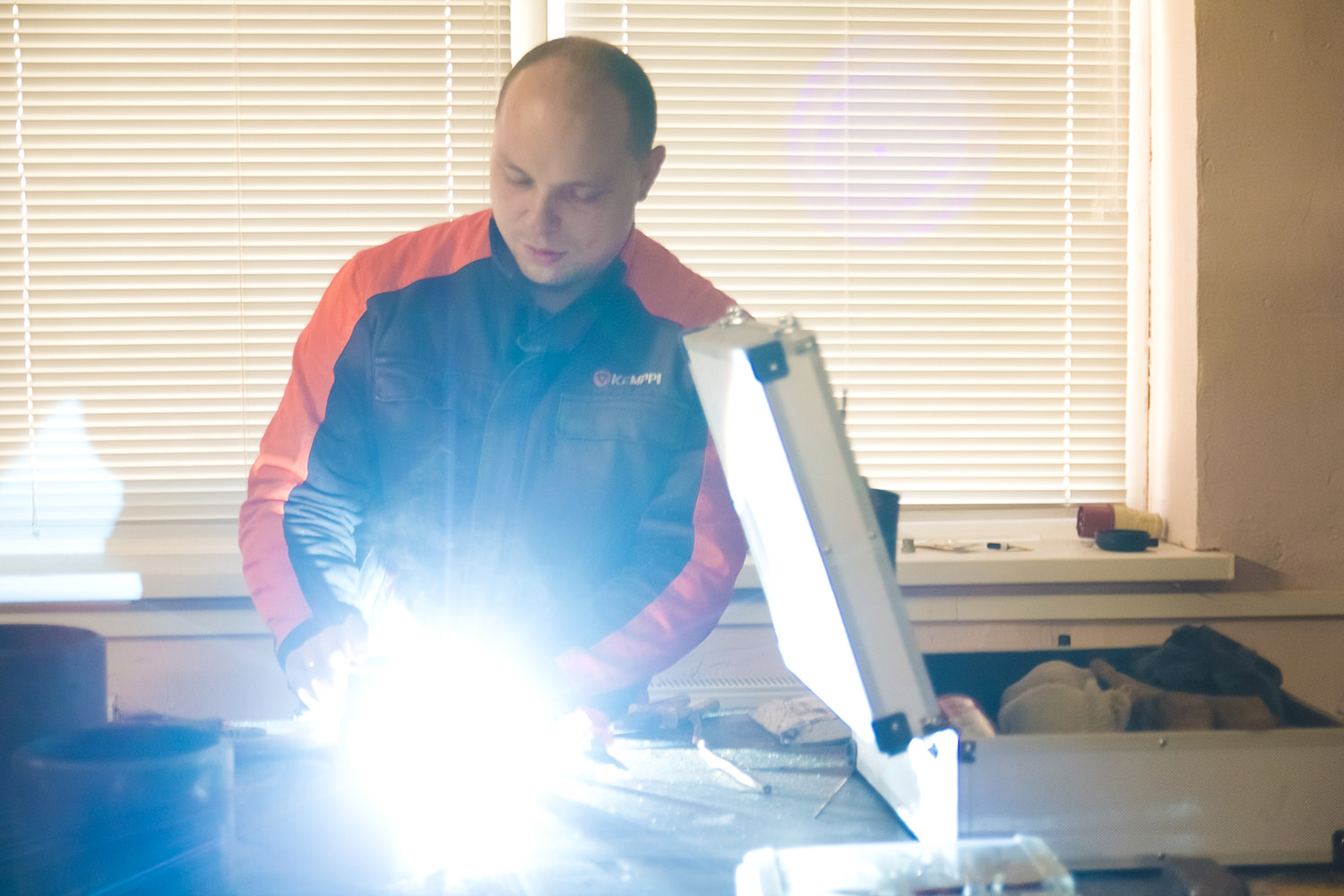 They have visited the showroom of the Astraweld Company. Mr. Sergey Grikh, who works as an engineer at this company, has told his young guests about welding techniques and about various types of welding equipment. He showed them the most modern tools and devices and explained their main operational principles. As for Mr. Alexander Grishin, Director of this company, he has given a short lecture about welding.