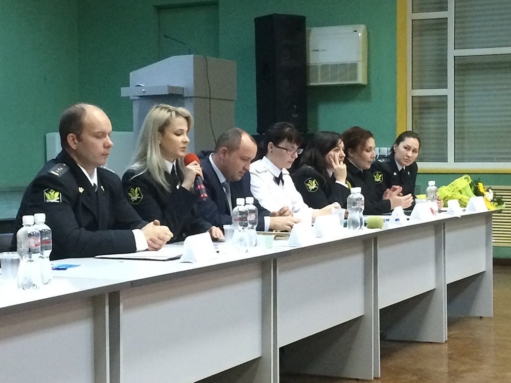 Ms. Valyaeva, Chief Expert Specialist of the Directorate Staff Unit, has told much about the employment procedures and regulations at the Federal Bailiff Service. Her speech has been followed with a film about the Service.