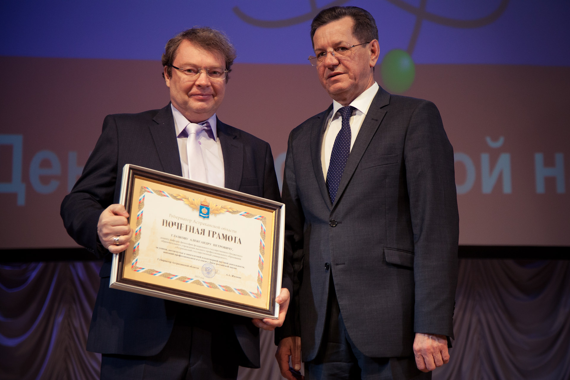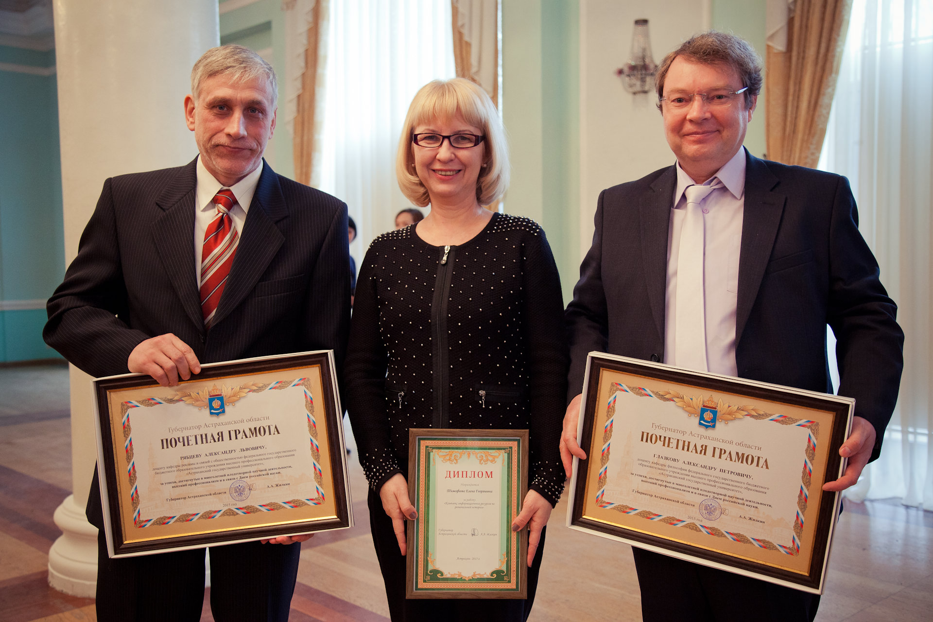 Mr. Alexander Zhilkin, Governor of Astrakhan Region, has congratulated the regional scientific community on the Day of Russian Science, as part of which this awards ceremony has been held. The range of scientists awarded with a Governor Diploma of Honor includes researchers from Astrakhan State University: Professor Elena Timofeeva (D.Sc. in History, Dean of the Historical Department), Dr. Alexander Glazkov (D.Sc. in Philosophy, Associate Professor of the Chair of Philosophy), and Dr. Alexander Ryabtsev (D.Sc. in History, Associate Professor of the Chair of Advertising & Public Relations).