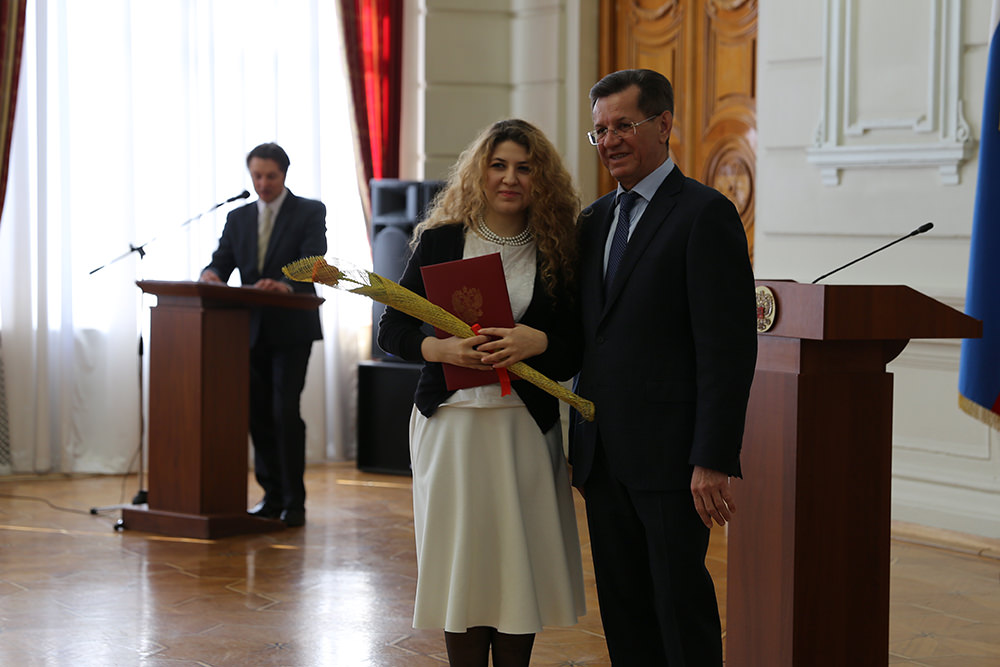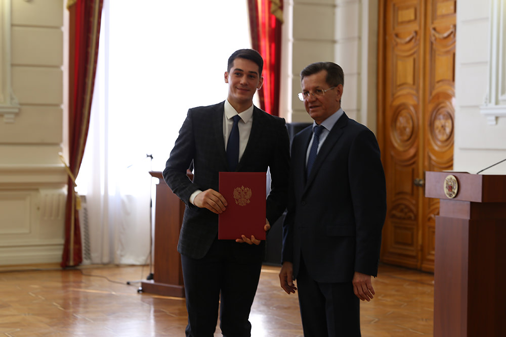 Today Mr. Alexander Zhilkin, Governor of Astrakhan Region, has granted certificates of Regional Governor’s Scholarship to the best students of Astrakhan State University at the Grand Hall of his official residence.