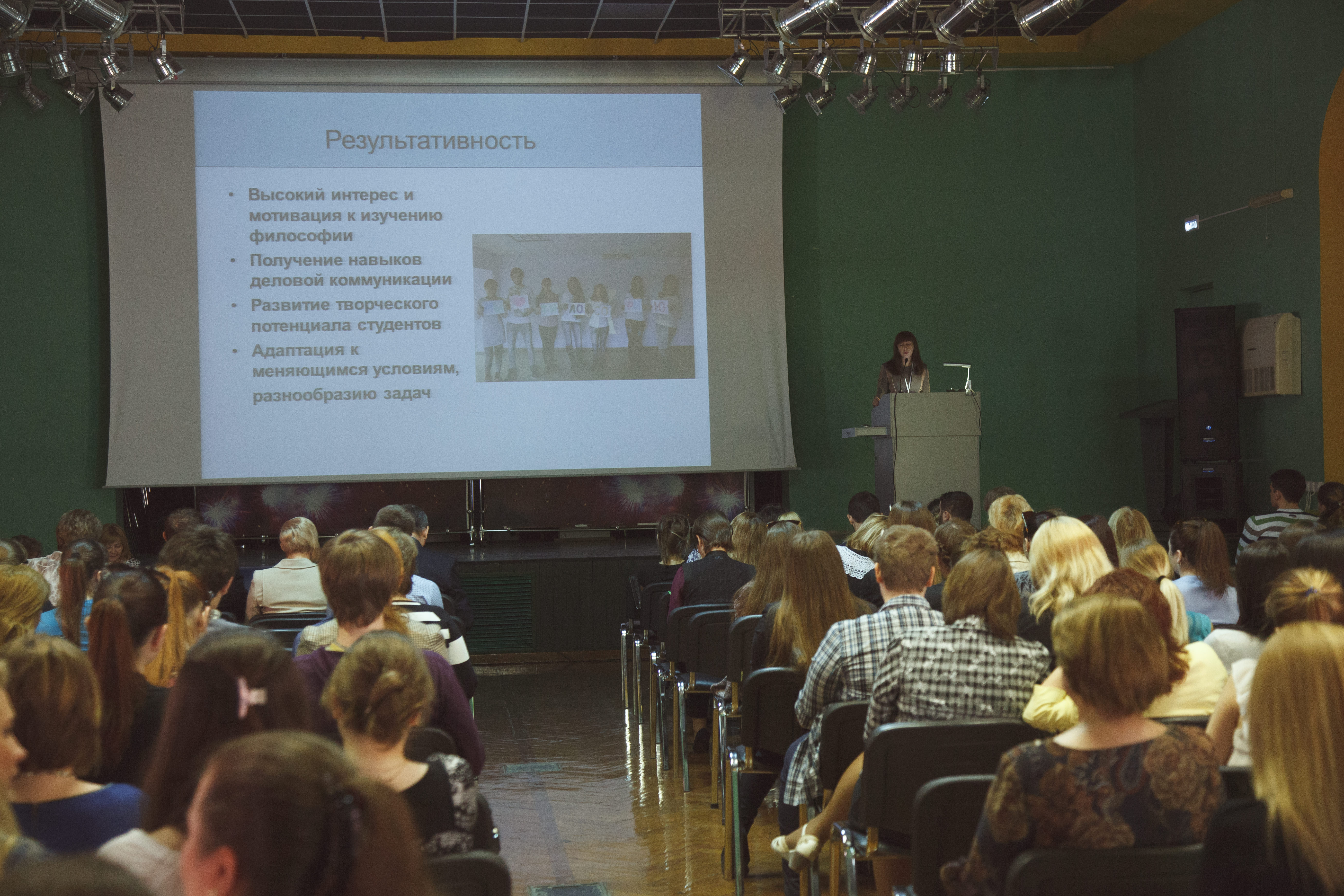 Formation of students’ cognitive needs has been the main theme of the speech by Prof. Lyudmila Kasyanova, Dean of our Department of Philology & Journalism. Application of active methods of teaching, according to the Dean, makes the educational process at our master courses practice-oriented. As a result of teamwork done by professors and students of the Department, complex innovative projects in the field of Philology have been developed.