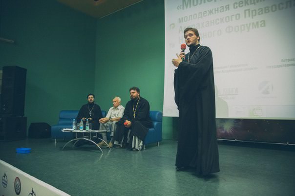 On Sept. 22, 2015, the section “Youth & Faith” of the Astrakhan Orthodox Folk Forum has been hosted by Astrakhan State University. It was clergy of the Russian Orthodox Church whose representatives have become our distinguished guests – His Eminence Bishop Antoniy (Azizov), Reverend Roman (Skolota), Reverend Vitaliy (Semyonov), and Professor Alexei Osipov from Moscow Theological Academy. The latter has given a lecture related to the moral state of the modern society. In his lecture, Prof. Osipov has pointed out that a modern human’s desire for comfort is frequently accompanied with envy, money grubbing, pride, and arrogance, which, in its turn, provokes regression in the social development. As for His Eminence Antoniy, he has wished each of the meeting participants felt a strong desire to learn and understand the real meaning of life. The questions, which our students asked the distinguished guests actively, confirm that a viable dialogue between the church and the state is indeed of high importance.