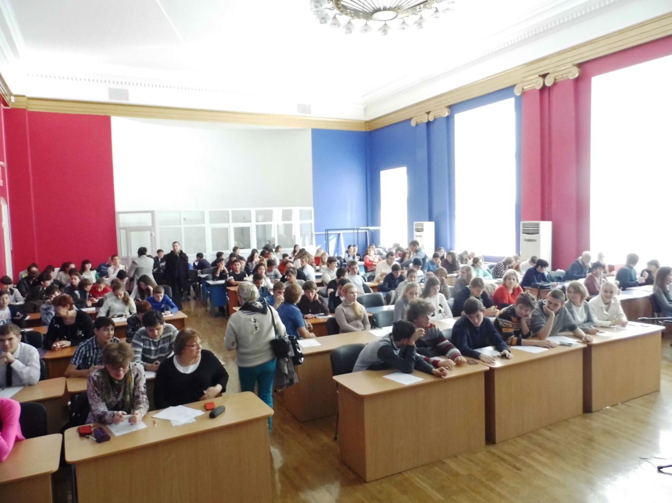 To check their knowledge of Geography, over 500 people have come to Astrakhan State University; each of them was given a unique ID number, which will help them find out their scores after December 10 on the web site of the Russian Geographical Society.