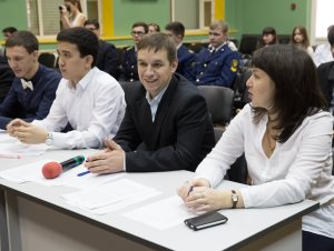 Three teams have taken part in the contest: the Decembrists (1st-year-students), the Presumption of Innocence (2nd-year-students), and the Legal Entities (3rd- year-students). The jury, which has included both top members of the Department’s faculty staff and their students, has assessed each of the six stages of the game, giving each team 1 to 2 scores for their correct responses.