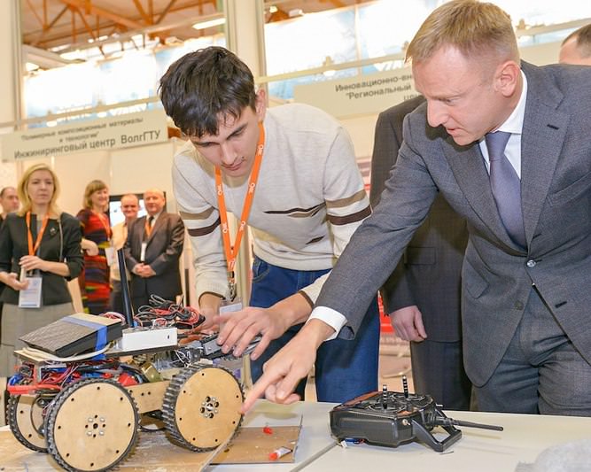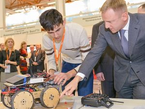The National Cup of Robotics & Technical Cybernetics is a robot-technical competition that is held on a special site in Moscow. During this event, our three students had a talk with Mr. Dmitry Livanov, the Federal Minister of Education & Science, who asked them what materials they used to assemble their robot and how they assembled it; he wished them good luck in their future work.