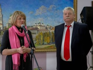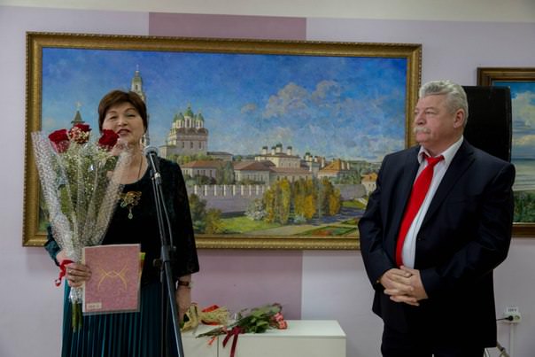 Ms. Galina Zoteeva, Minister of Culture & Tourism of Astrakhan Region, opened the official part of the event. Besides wishing Mr. Petrov to conquer new peaks in his creative activities, she granted him a Diploma of Honor on behalf of the Governor of Astrakhan Region. As for Ms. Lyudmila Karavaeva, Chairperson of the Astrakhan Branch of the Union of Russian Artists, she remarked that she knows Mr. Petrov not just as a smart artist, but also as a real friend. “It’s not by chance that his birthday and the appulse have coincided; that witnesses for Mr. Alexander Petrov’s significance and uniqueness”, she summarized her congratulating speech. In her turn, Dr. Natalya Andryushina, Dean of the Department of Architecture & Design of Astrakhan State University, pointed out that Mr. Petrov is an outstanding teacher and mentor, that his students respect him a lot. Indeed, Mr. Petrov’s students congratulated him after their Dean’s speech warmly and sincerely.