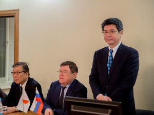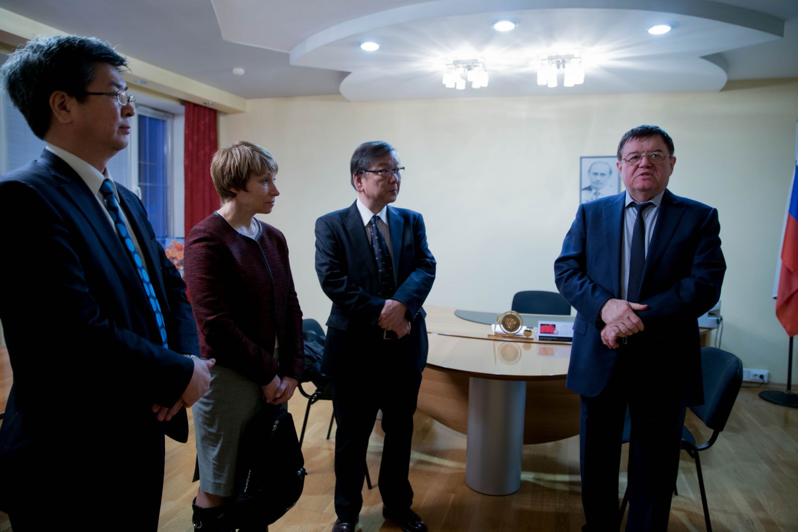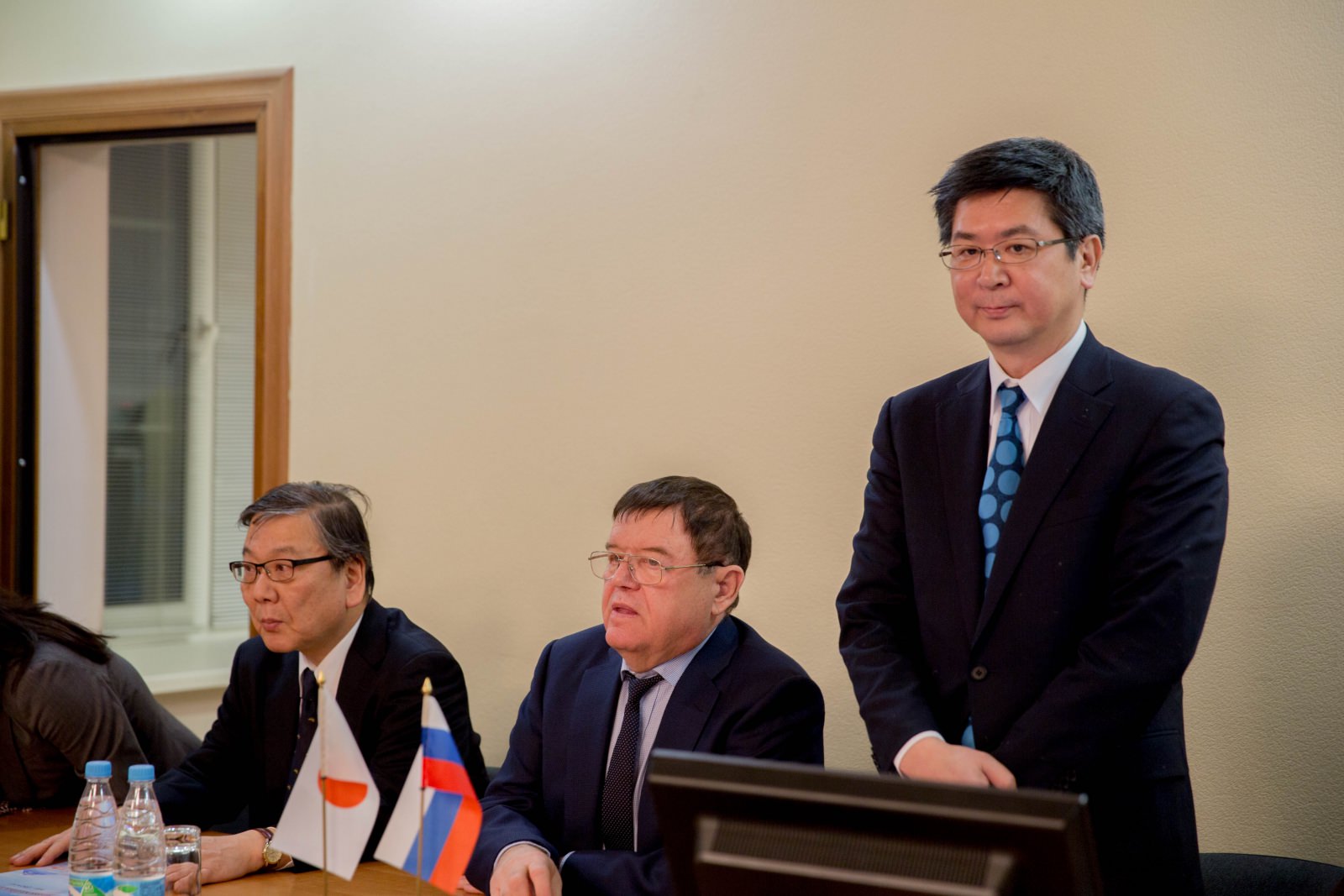 The delegation includes Mr. Takafumi Nakai, Head of the Moscow Office of the ROTOBO, Mr. Kozo Olatari from the same institution, Mr. Tsumutoku Yamada, General Secretary, Head of the Secretariat of Japanese Business Club in Moscow, and Ms. Keiko Suganuma (Associate Professor, College of Bioresource Sciences, Nihon University). Mr. Sergey Lvov, Deputy Chief of the International Department of the Ministry of International & Foreign Economic Relations of Astrakhan Region, has accompanied them during their visit to ASU.