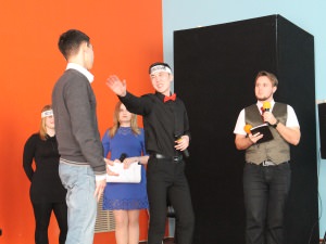 As for our current students, they have arranged a whole performance that included a lot of parodies, jokes, and grotesques. Their senior peers recognized themselves in characters of those jokes and gladly took part in a comic exam.