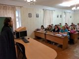In honor of this holiday, Rev. Alvian Tkhelidze from the Akhtubinsk Eparchy of the Russian Orthodox Church gave his lecture “Impact of Church Slavonic Language upon Modern Russian Literary Language” at the Znamensk Branch of Astrakhan State University.