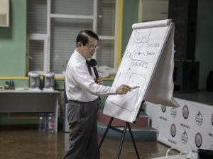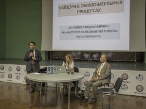 Then Mr. Horikiri had an interactive meeting with key members of our faculty, active students, and top managers involved in active implementation of lean production into overall activities of our University. The discussed questions concerned mainly specifics of applying kaizen both to provide educational services in general and to deliver a particular lecture or event. Over 300 people took part in the discussion; each of them gives a very good feedback.