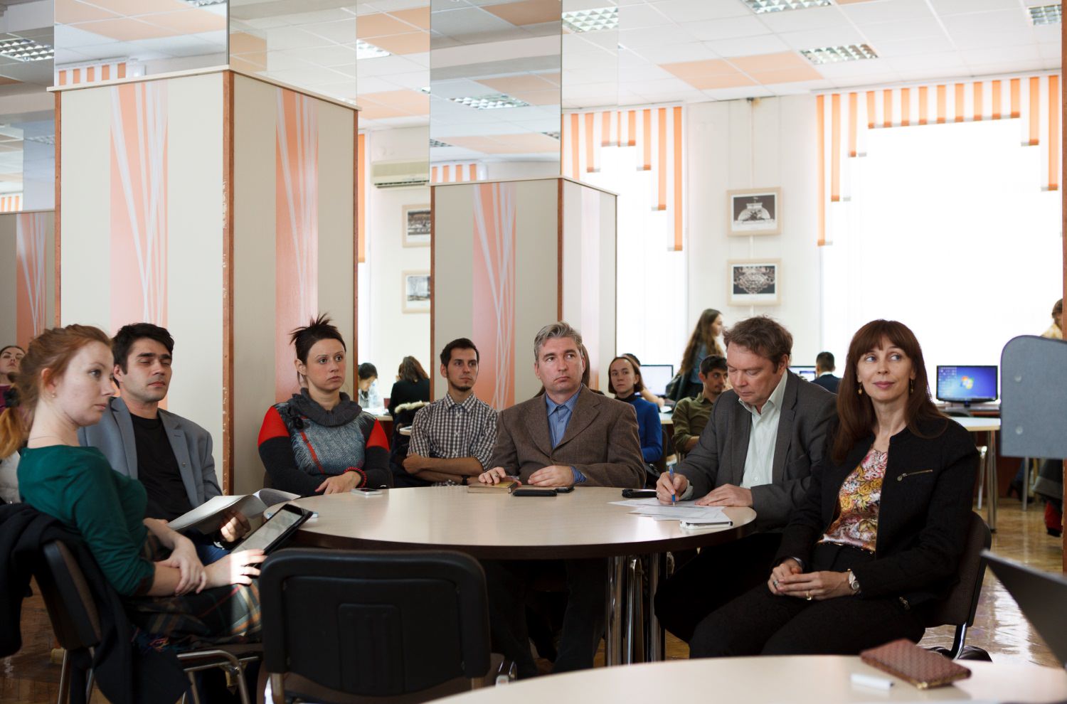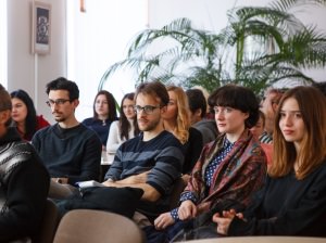 The meeting concerned works and life of Umberto Eco (Jan. 05, 1932 – Feb. 19, 2016), the well-known Italian philosopher and postmodernism writer, who also specialized in medieval history, semiotics, aesthetics, culture, and literary criticism. About 50 people took part in the event, which was accompanied with an exposition of Eco’s books.
