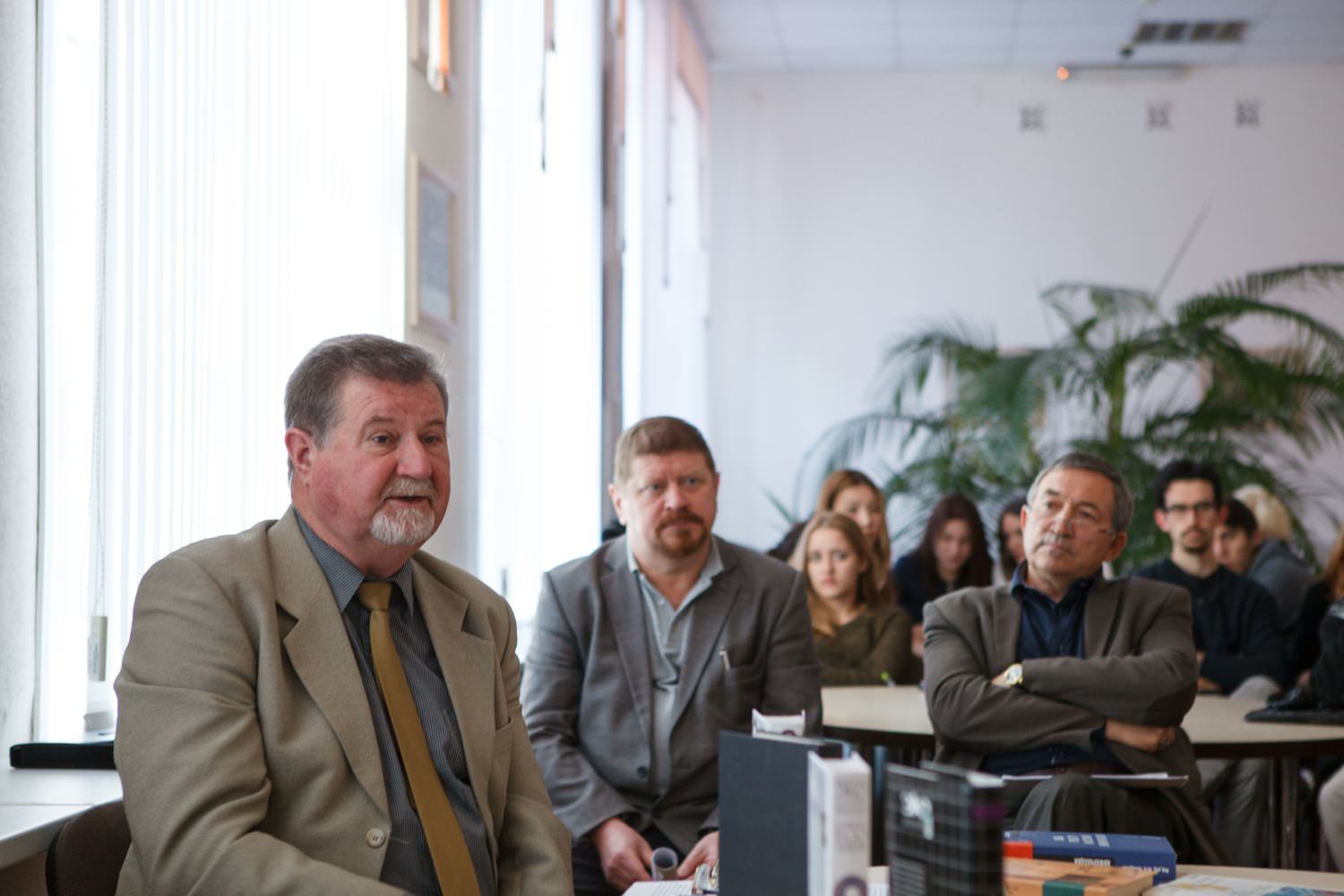Umberto Eco’s elite-related ideas, which his works reflect implicitly, were the theme of the report by Prof. Karabushchenko. As for Prof. Alexander Glazkov, Head of our Chair of Philosophy, he emphasized the issues of religious belief and nonbelief in Eco’s works. His report concerned “Belief or Nonbelief?”, a non-fiction book by Umberto Eco and Cardinal Carlo Maria Martini.