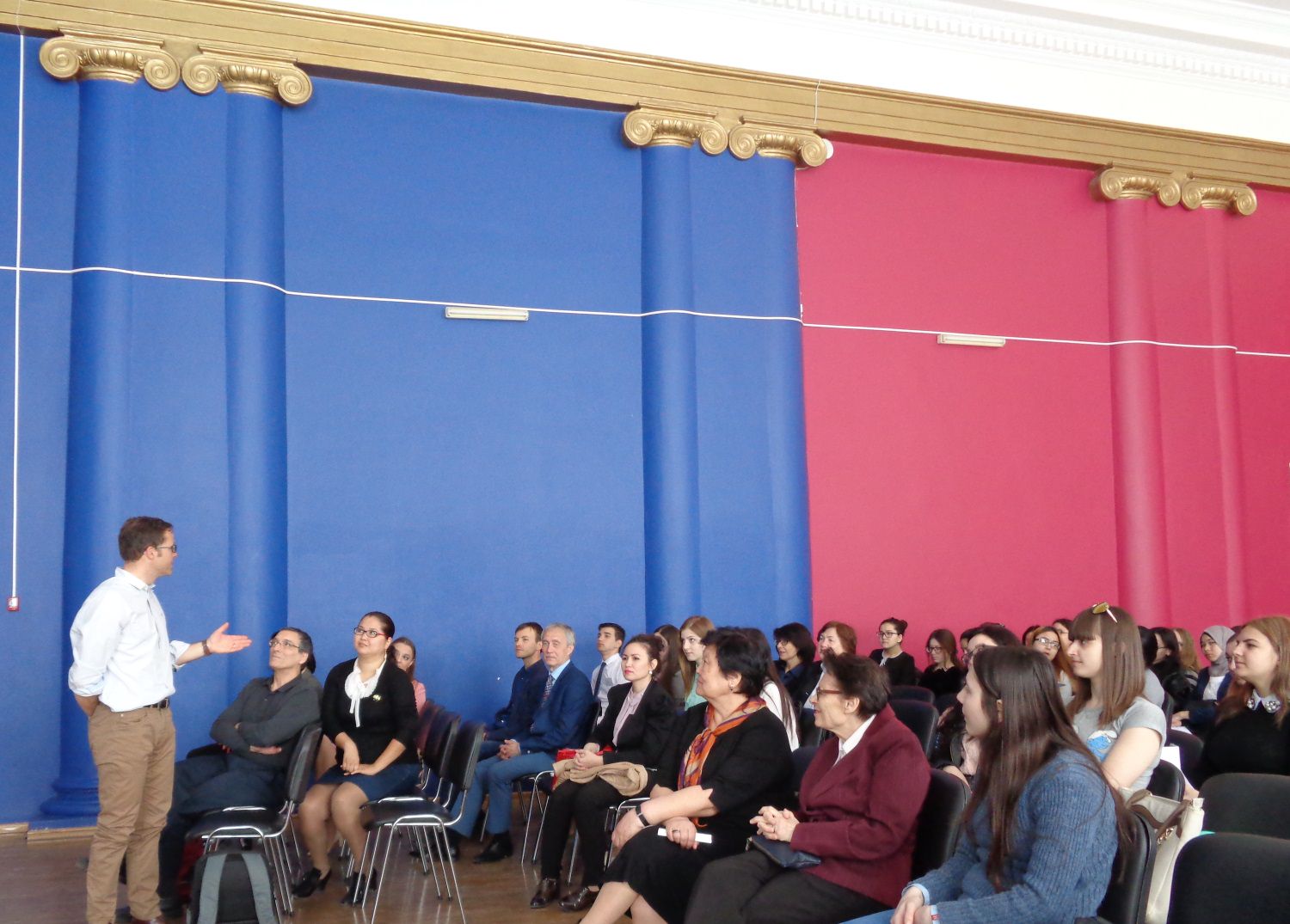 Prof. Alexey Tyrkov, Dean of the Department, opened the plenary session. Among the key speakers, there were Prof. Makhram Gasanovich Abdullaev from Dagestan State University (“Palladium-Containing Ionites in Synthesis of Medicinal Stuff”), Prof. Rakhmetulla Nasirov from Atyrau State University in Kazakhstan (“Carbanion Formation Mechanism from Triphenylmethane at Sodium Reduction”), and Prof. Polina Dmitrievna Vasilyeva from Kalmyk State University (“Concerning the Issue of Schoolchildren’s Systemic Knowledge of Chemistry”).