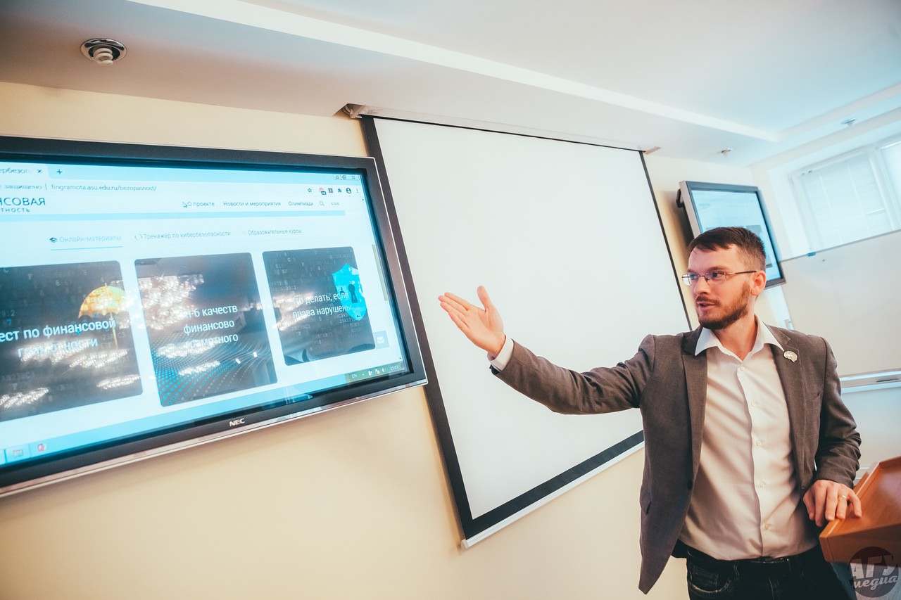 Так, руководитель проектного офиса «Искусственный интеллект» Александр Кошкаров презентовал демоверсию онлайн-платформы на портале АГУ по финансовой кибербезопасности. По мысли разработчиков, она будет включать: