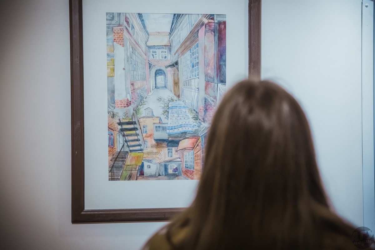 В зале презентованы работы, созданные во время практики и занятий в вузе, а также написанные специально для экспозиции. Инициатива проведения выставки принадлежала декану факультета архитектуры и дизайна Ирине Леоновой. По её словам, подобные мероприятия дают шанс молодым талантам показать себя.