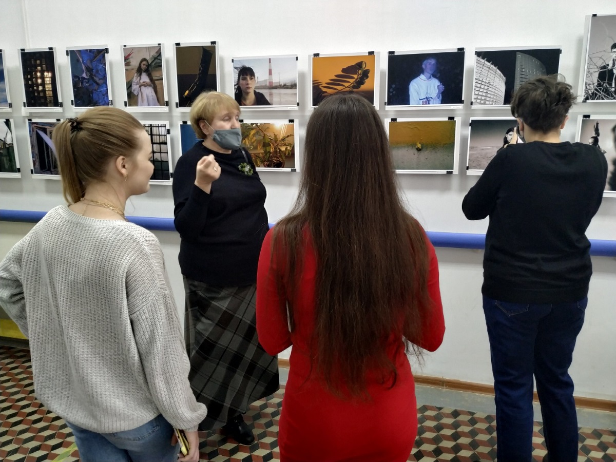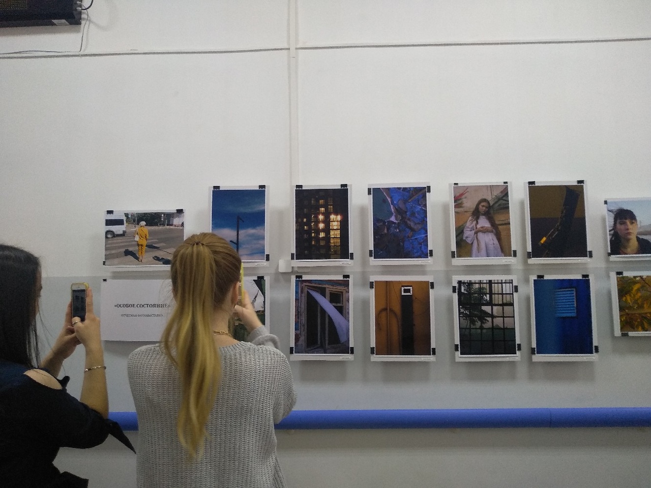 Третьекурсники факультета филологии и журналистики АГУ в рамках изучения дисциплин «Фотожурналистика» (преподаватель — Максим Коротченко) и «Основы журналистской деятельности» (преподаватель — Галина Белолипская) посетили фотоэкспозицию «Особое состояние».