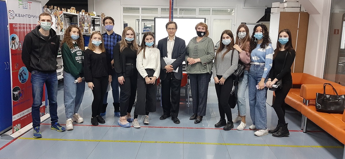 31 января группа первокурсников факультета филологии и журналистики АГУ приняла участие в работе проектной площадки на базе «Кванториума» (Регионального школьного технопарка). Сначала состоялась экскурсия по технопарку, которую провёл его директор Владимир Войков. В формате диалога он познакомил будущих медиаспециалистов с разными отделами «Кванториума» и технологиями, которые в них разрабатываются. Владимир Войков рассказал также о тенденциях изучаемых дисциплин, о трендах науки и актуальных проектах, о новейших технологиях, представленных в данном учреждении, о научных руководителях и талантливых учениках. Кроме того, экскурсанты своими глазами увидели такие отделы РШТ, как биоквантум, наноквантум, промробоквантум, аэроквантум, IT-квантум, VR/AR-квантум.