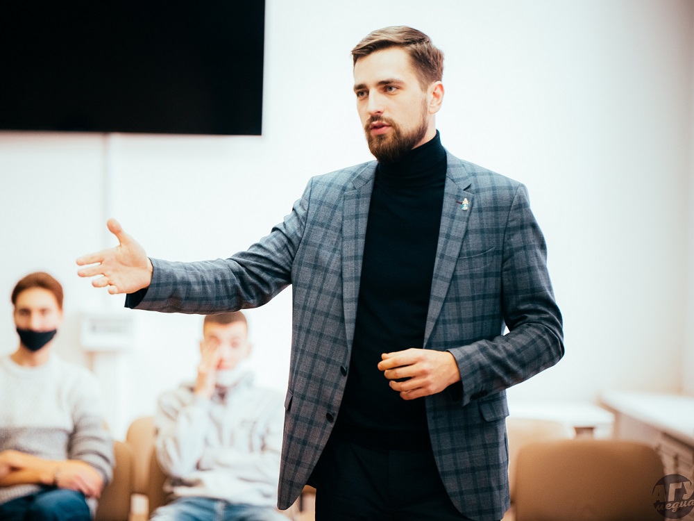 В этот раз перед участниками проекта, инициированного общественным движением «Молодёжь Губернии», выступил руководитель агентства по делам молодёжи Астраханской области Егор Угаров.
