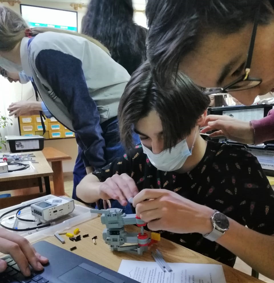 Для учеников 10-х классов преподаватели робототехники из центра развития современных компетенций детей «Дом научной коллаборации имени В. К. Тредиаковского» АГУ Павел Тамков и Михаил Гладышев под руководством Даниила Матвеева провели мастер-класс по созданию роботов.