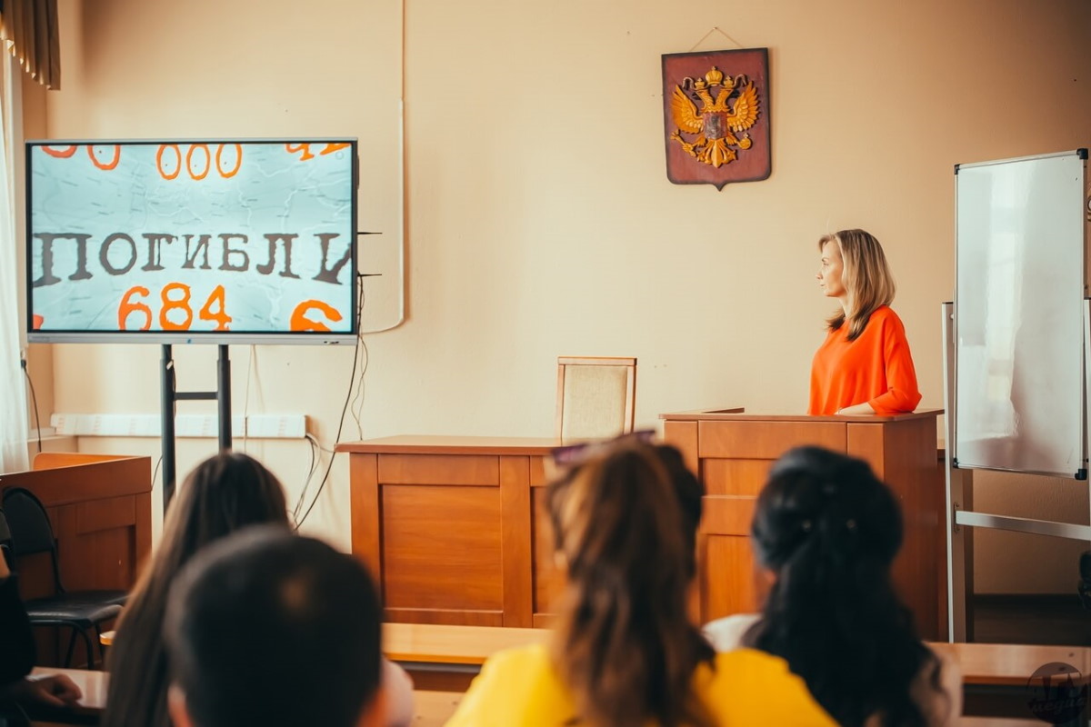 Студентам АГУ рассказали о событиях Великой Отечественной войны и показали видеофильм под названием «Без срока давности», передающий весь ужас, пережитый людьми. Затем молодые люди принялись за написание писем в будущее.