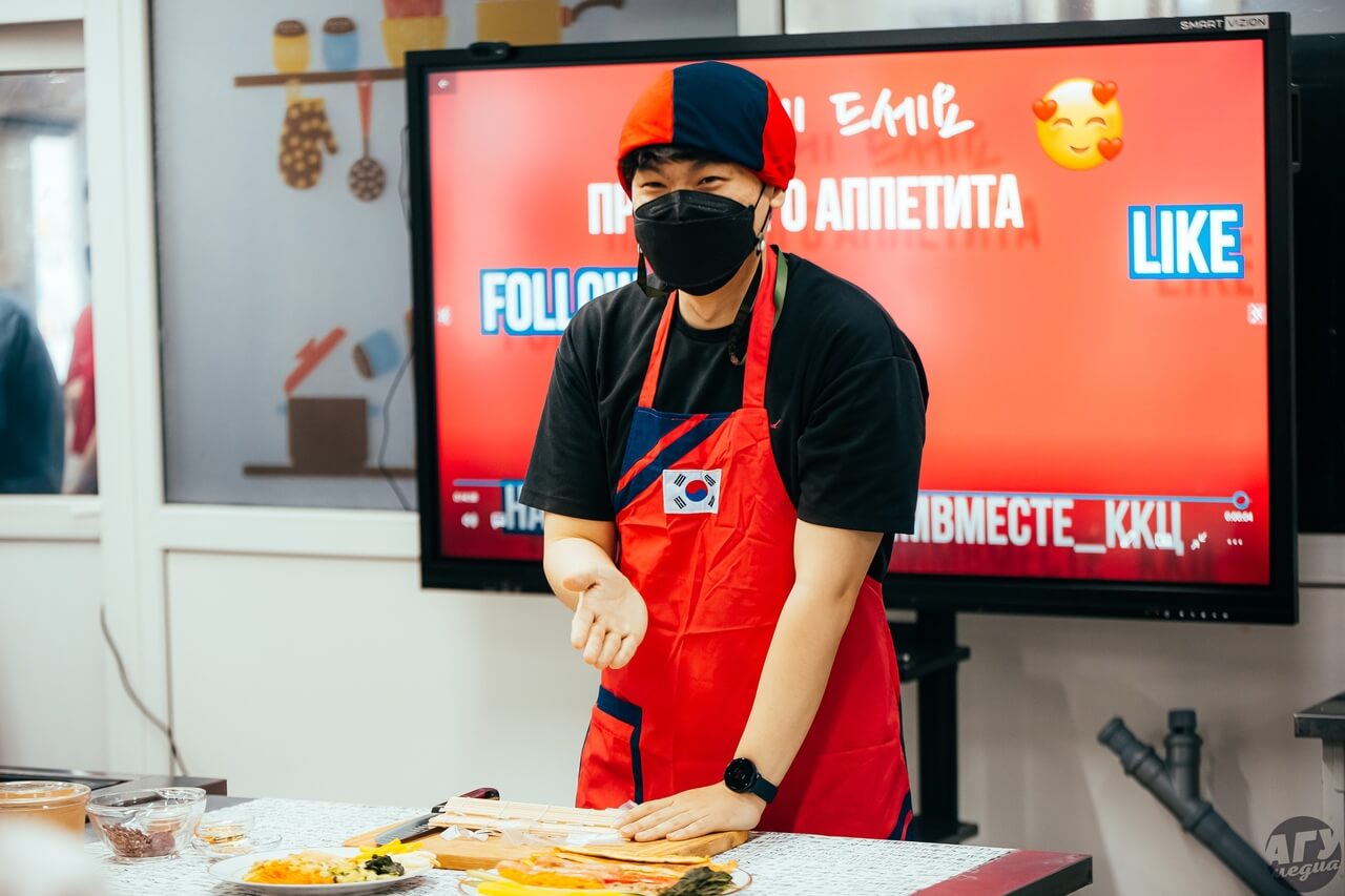 Участниками занятия стали слушатели центра корейского языка и культуры АГУ. Студенты научились готовить такие блюда, как кимпаб — роллы, завёрнутые в сушёные прессованные листы морской капусты, и пипимпаб — белый варёный рис, смешанный с различными дополнительными ингредиентами: зеленью, овощами, мясом или рыбой.