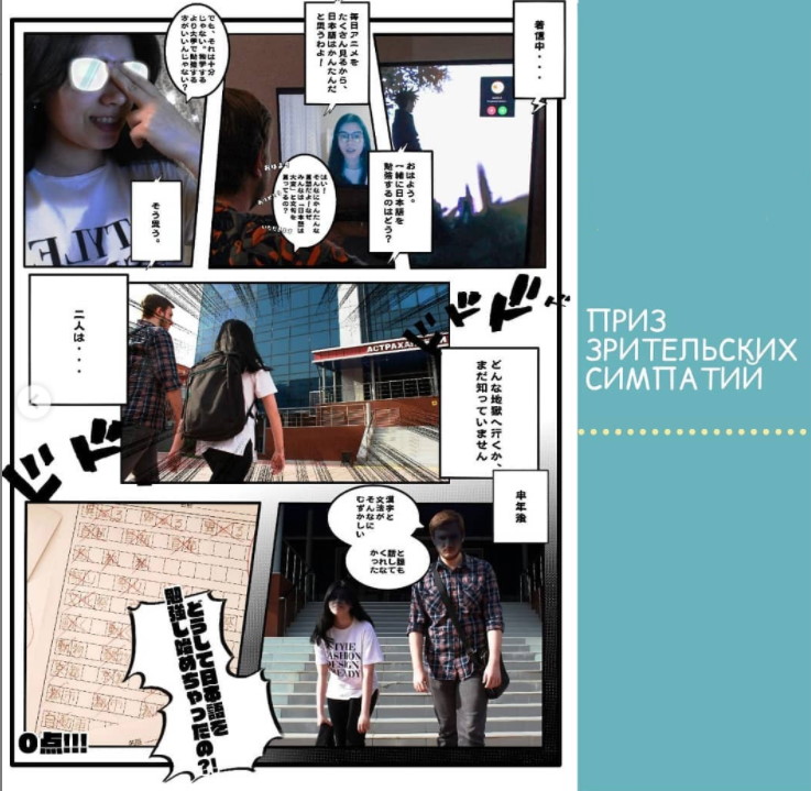 В мае на кафедре восточных языков Астраханского госуниверситета был объявлен конкурс «Фото-манги». Студентам предлагалось выбрать одну из двух тем: «Весенняя пора в Астрахани» или «Погружаюсь в мир японского языка». Затем необходимо было в соответствие с жанром придумать сюжет манги и сделать фотографии, которые в дальнейшем будут использоваться в качестве кадров к авторскому комиксу.