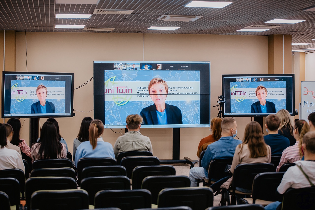 Онлайн-лекцию «Многоязычие: знать язык или понимать другого?» для студентов пяти факультетов АГУ (геолого-географического, исторического, социальных коммуникаций, филологии и журналистики, иностранных языков) провела директор Центра регионоведения и гуманитарно-образовательного сотрудничества и координатор кафедры ЮНЕСКО МПГУ Марина Кривенькая. Спикер рассказала молодым людям о развитии концепции многоязычия, лингвистических компетенциях, целях пользования языками, а также о мировом языковом разнообразии и границах славянского мира. В ходе выступления представитель Московского педагогического государственного университета отметила этнокультурную неординарность нашего города.