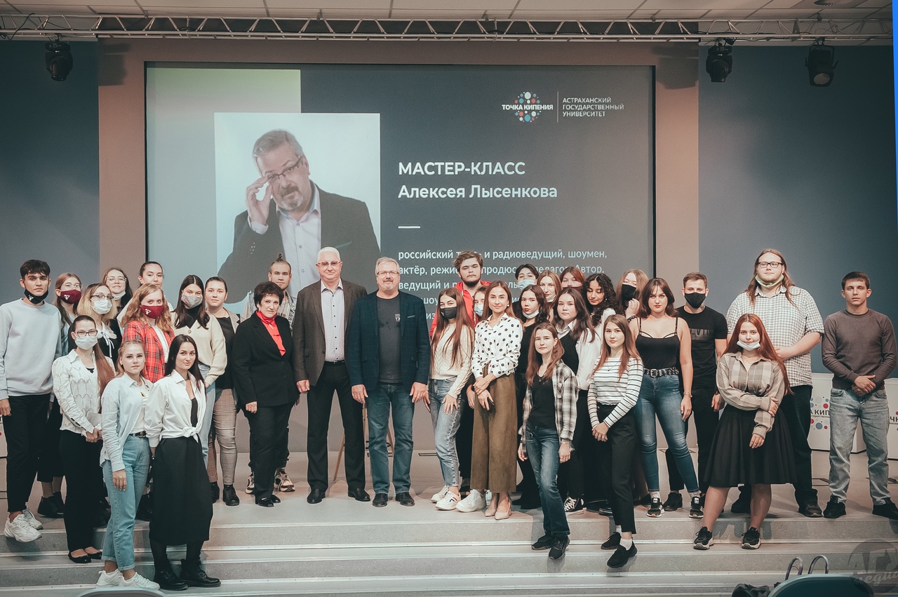 Студентам Астраханского госуниверситета посчастливилось стать участниками творческой встречи с известным российским теле- и радиоведущим, шоуменом, актёром, режиссёром, продюсером, педагогом, автором, ведущим и руководителем развлекательного телешоу «Сам себе режиссёр» Алексеем Лысенковым. А некоторым даже повезло обучаться у него.