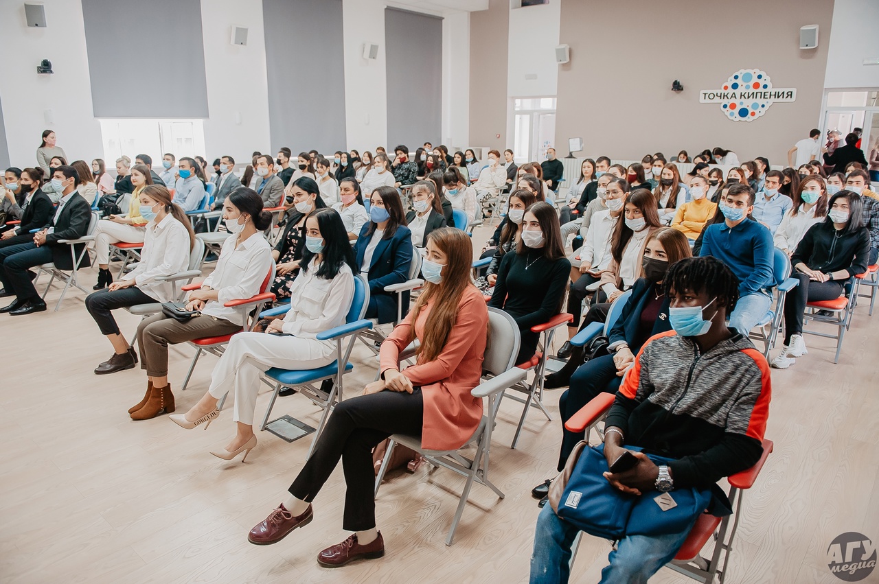 В двух локациях — зале центра «Точка кипения» и большой лекционной аудитории Астраханского госуниверситета — собрались студенты из 10 стран ближнего и дальнего зарубежья: Азербайджана, Казахстана, Туркменистана, Узбекистана, Афганистана, Гвинеи-Бисау, Египта, Китая, Марокко, Турции.