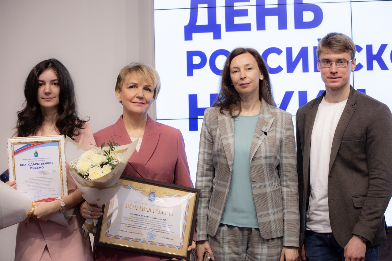 В честь Дня российской науки представителям Астраханского госуниверситета торжественно вручили высокие награды. Благодарственное письмо губернатора Астраханской области получила директор Инновационного естественного института АГУ Анна Федотова, а благодарственное письмо министерства образования и науки Астраханской области — научный сотрудник центра изучения проблем комплексной безопасности Каспийского макрорегиона и противодействия терроризму и экстремизму Любовь Холова.