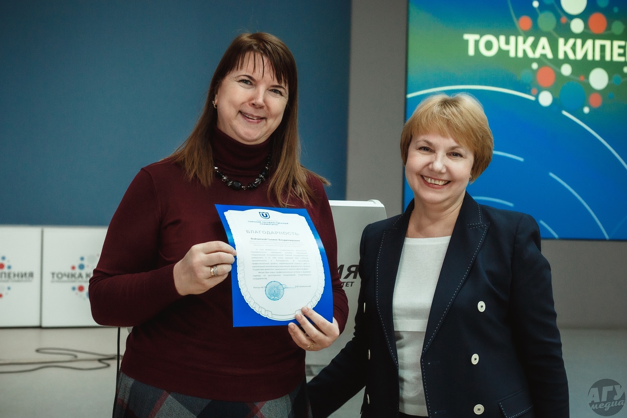 Помимо наград от министерства образования и науки состоялось вручение ещё ряда поощрительных документов. Так, Галина Файзиева отмечена благодарностью Национального исследовательского Томского государственного университета за вклад в реализацию федерального проекта «Содействие занятости» национального проекта «Демография».