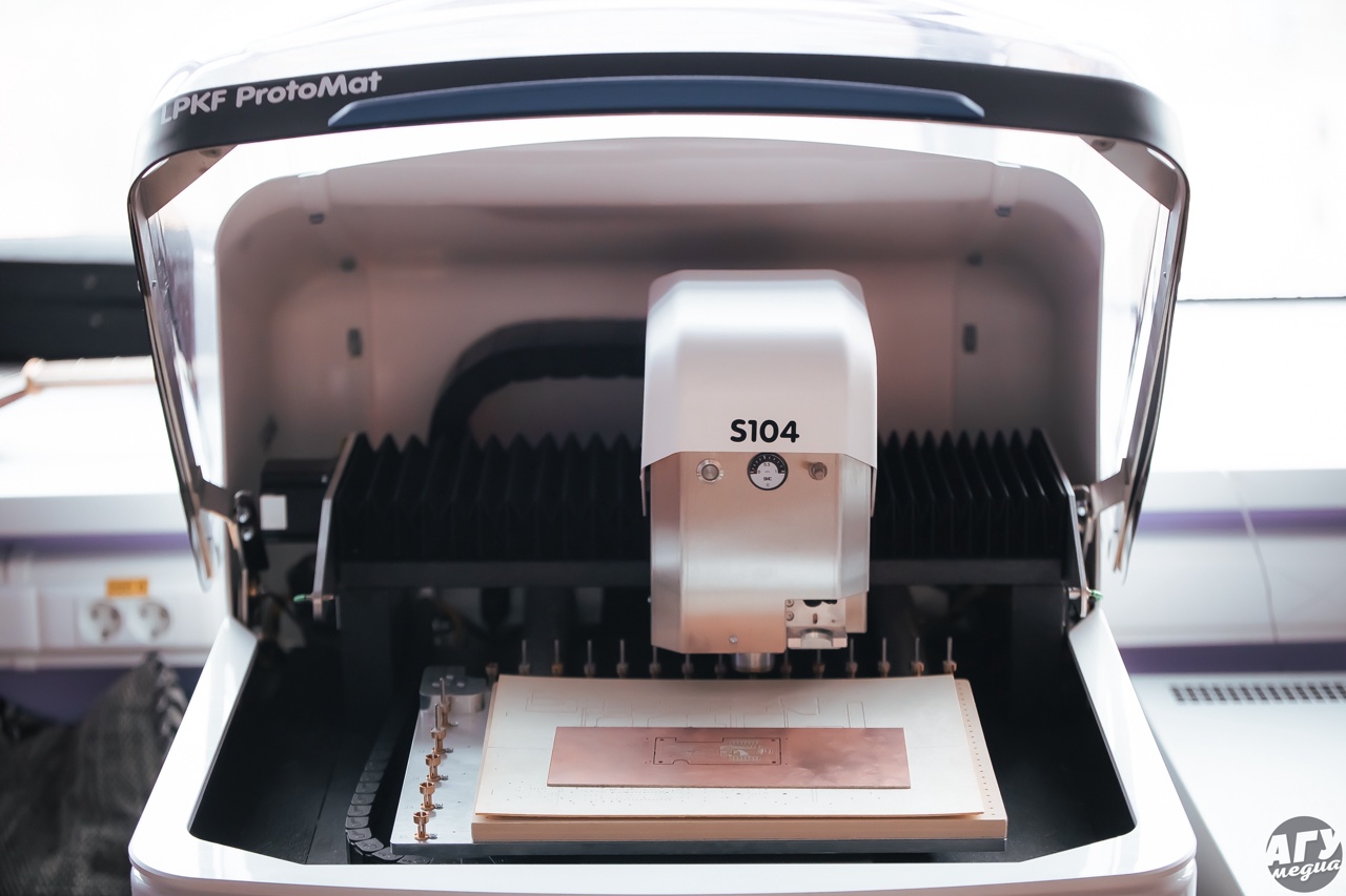 На этом станке уже работают студенты факультета физики, математики и инженерных технологий АГУ, в частности, делают компоненты для своих проектных и выпускных квалификационных работ. Причём имеющееся в АГУ оборудование позволяет выполнять полный производственный цикл: от проектирования в САПР до изготовления платы и дальнейшей сборки компонентной базы.