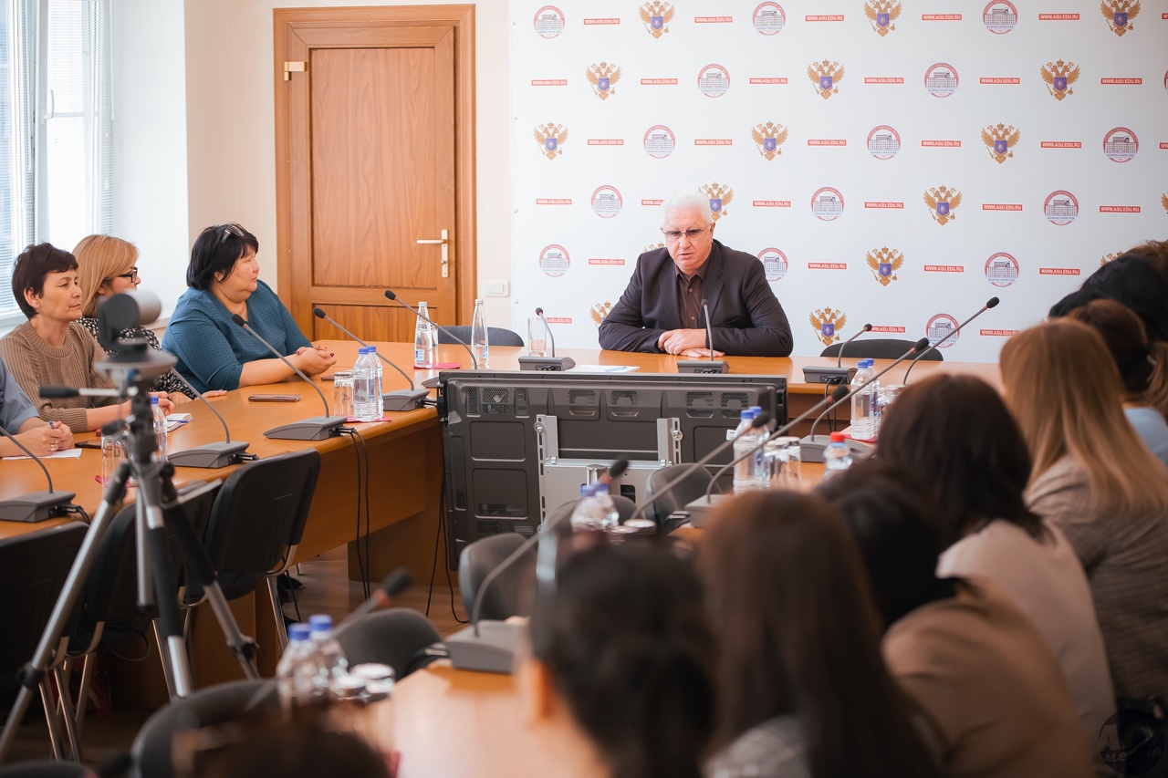 В ходе встречи ректор вуза Константин Маркелов рассказал педагогам о современном устройстве Астраханского госуниверситета, об актуальных направлениях обучения, участии вуза в программе «Приоритет 2030», а также о создании нового военного учебного центра.
