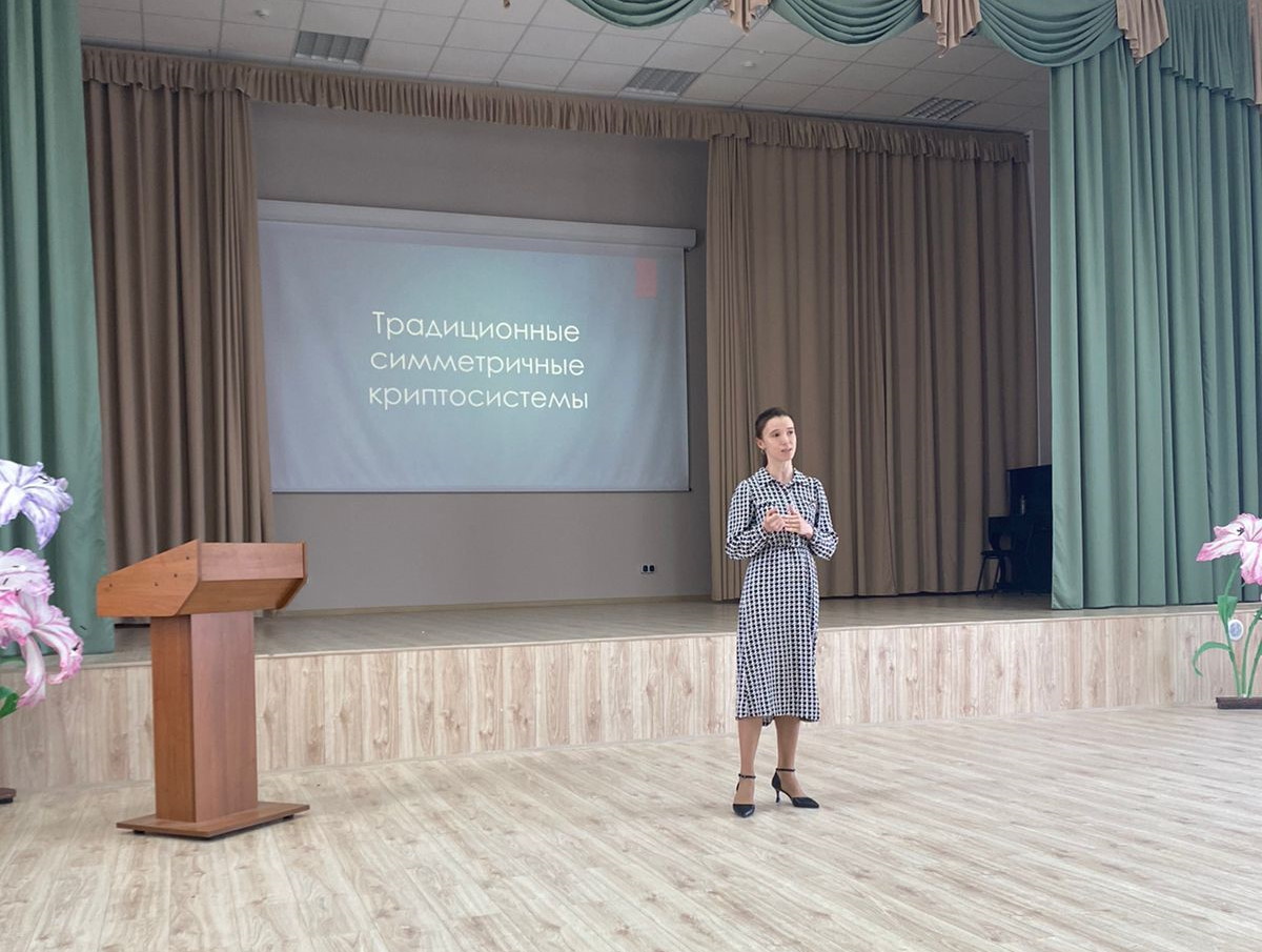 Большой интерес учащихся к цифровым технологиям вызвал также доклад Раисы Деминой, посвящённый отдельным разделам криптографической защиты информации.