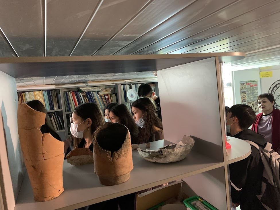Руководитель школы «Археология Нижнего Поволжья» Дмитрий Васильев рассказал гостям о раскопках у сёл Самосделка, Хошеутово и на Селитренном городище в Харабалинском районе. Ребята смогли не только увидеть уникальные археологические находки, но и потрогать их своими руками.