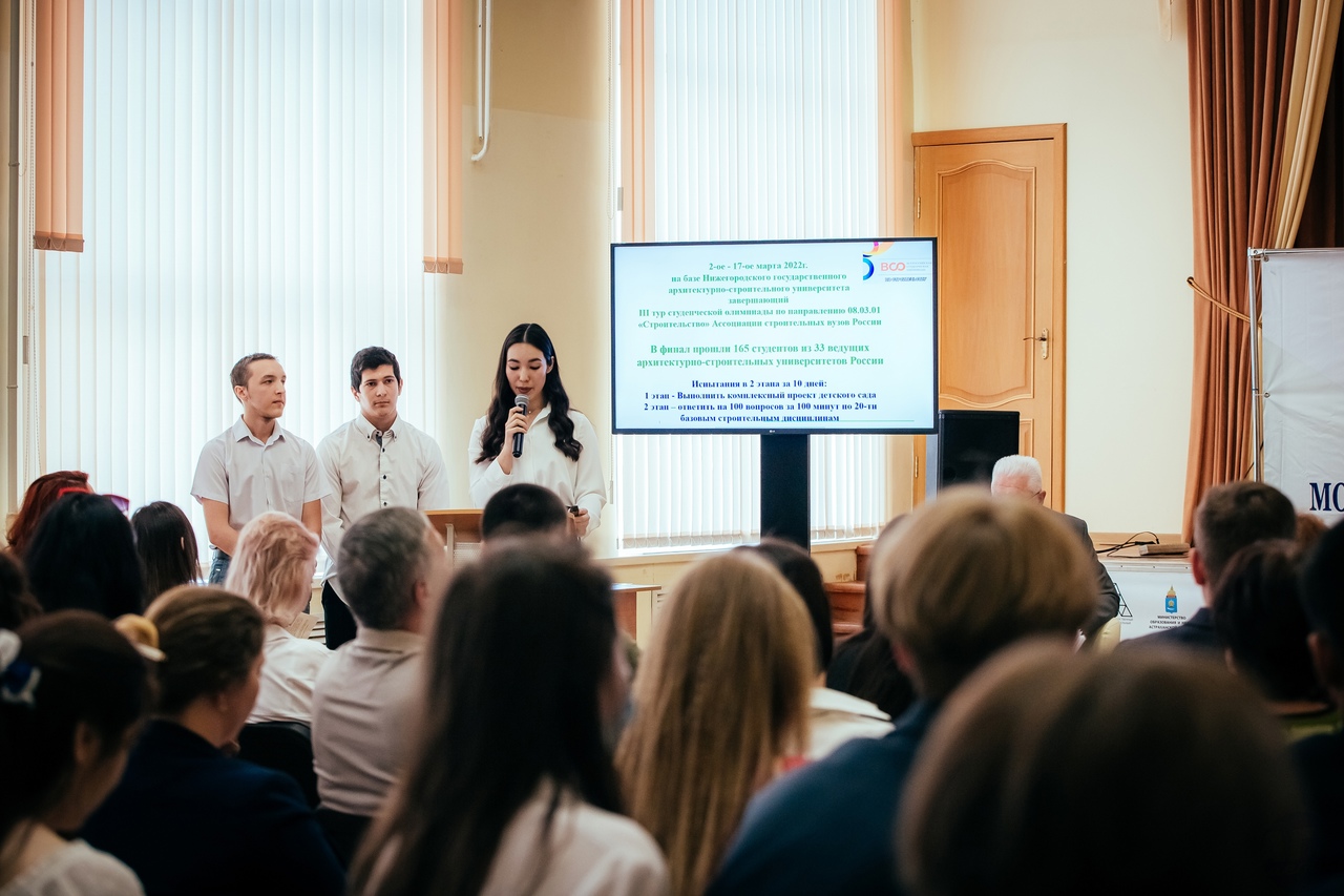Пленарное заседание продолжилось докладом призёров Всероссийской олимпиады по строительству по Южному федеральному округу и вручением благодарственных писем и грамот министерства образования и науки региона студентам — победителям Всероссийской олимпиады по направлению «Строительство» и профилям подготовки Ассоциации строительных вузов России и их научным руководителям.