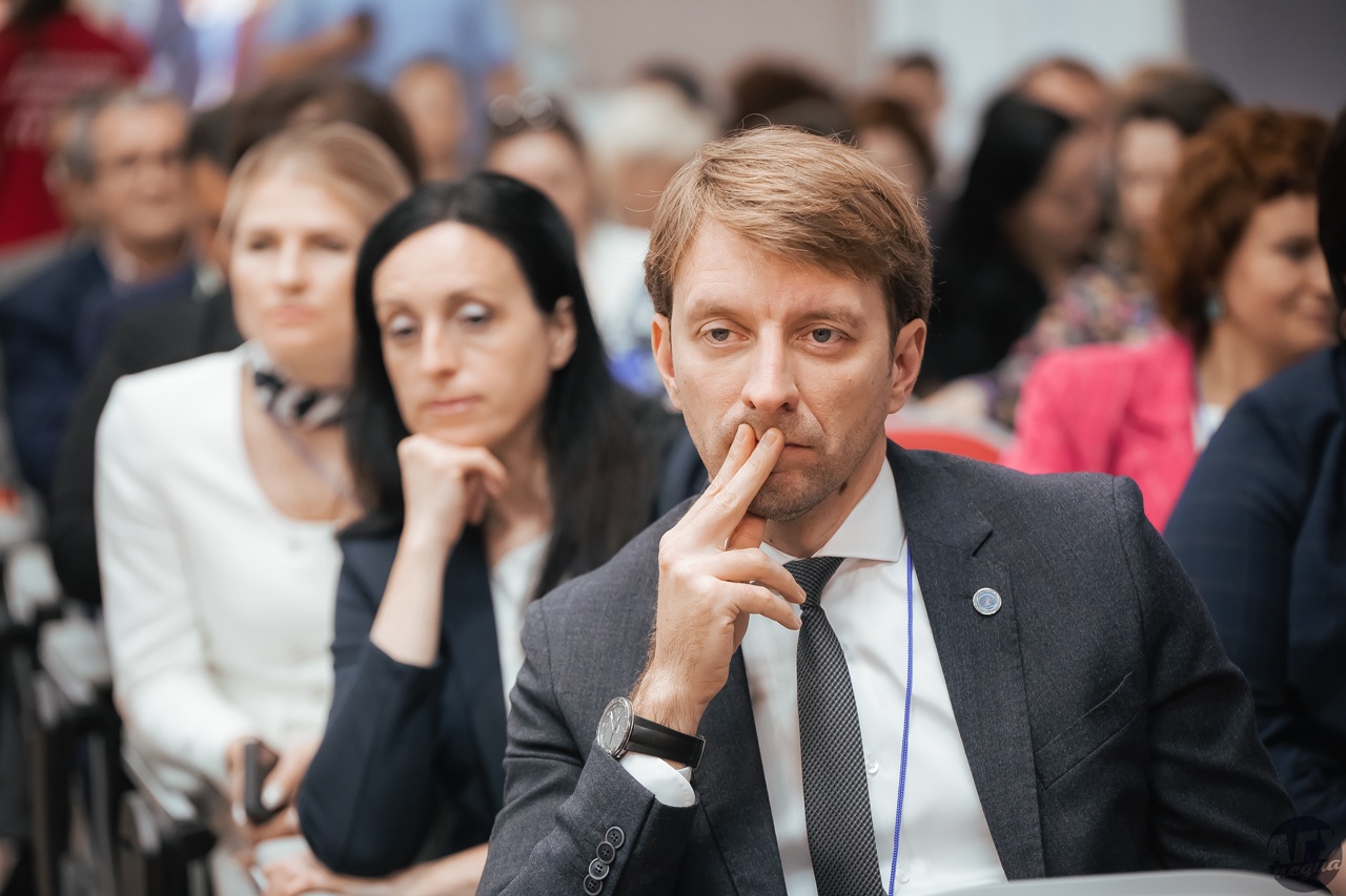 Первый заместитель председателя комитета Госдумы Российской Федерации по науке и высшему образованию Александр Мажуга рассказал участникам мероприятия о направлениях работы своей структуры и акцентировал внимание на законодательной поддержке проектов новых мер поддержки для молодых учёных.