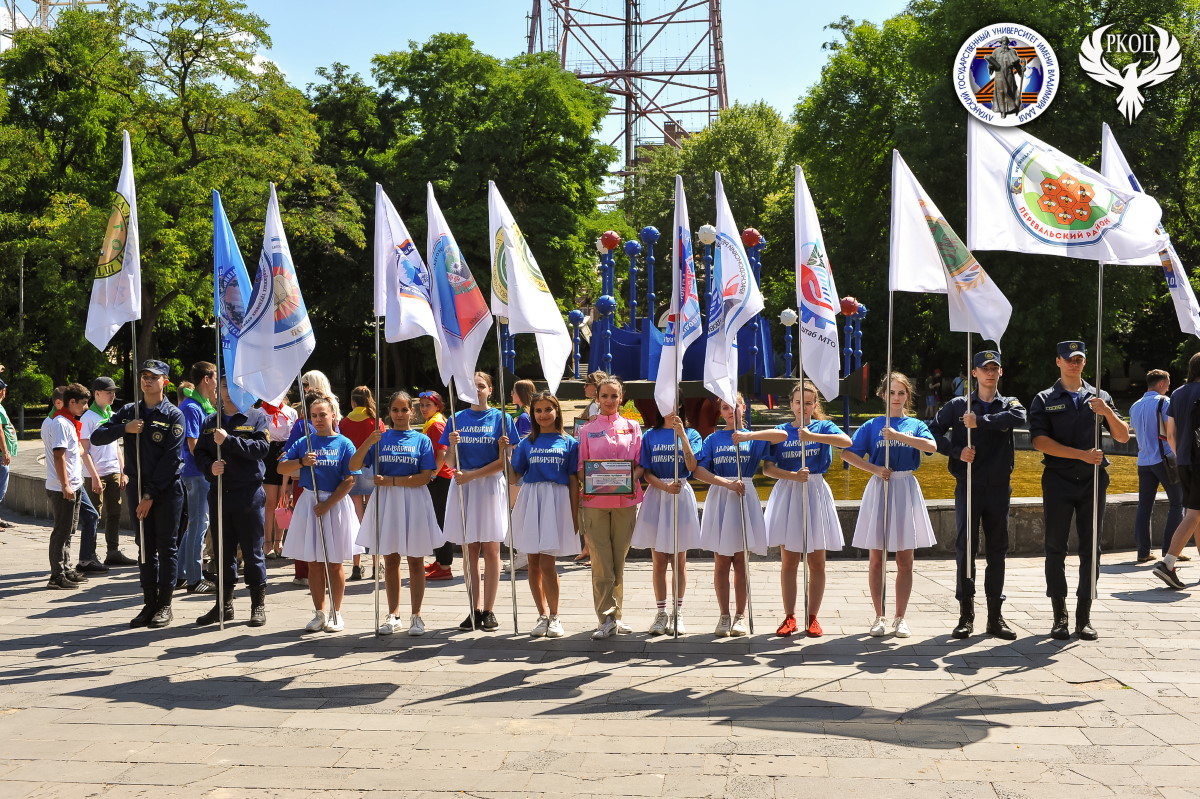 Церемония началась с парада флагов штабов молодёжных трудовых отрядов ЛНР и выступления агитбригады Луганского государственного университета имени Владимира Даля.