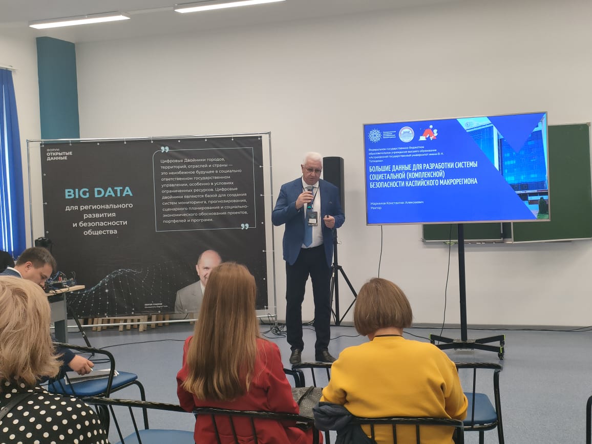 В рамках трека «BIG DATA для регионального развития и безопасности общества» глава вуза представил сообщение на тему «Большие данные для разработки системы социетальной (комплексной) безопасности Каспийского макрорегиона».