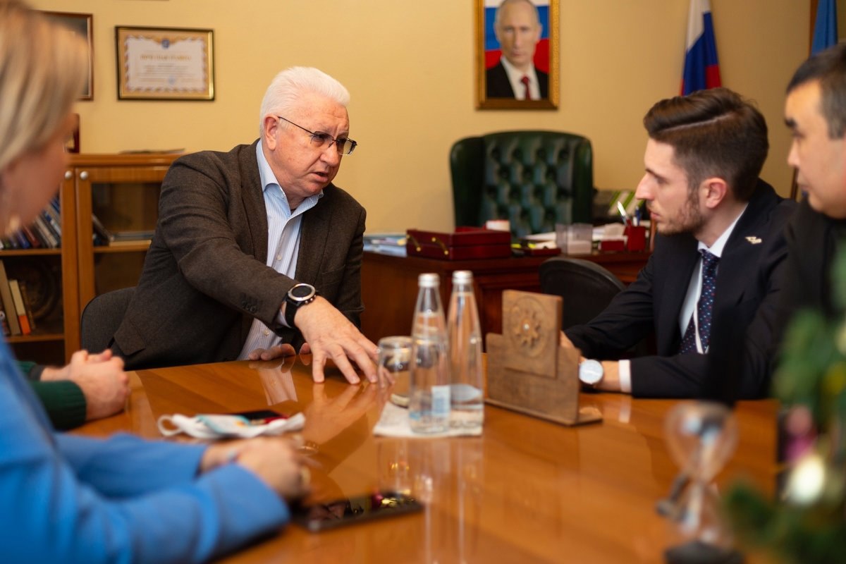 Глава Астраханского государственного университета имени В. Н. Татищева встретился с директором Центра содействия молодым специалистам Алексеем Рвачёвым, директором проекта Центра молодёжных инициатив Агентства стратегических инициатив по продвижению новых проектов Ильёй Матросом и руководителем департамента по международному сотрудничеству и внешнеэкономическим связям Ассоциации молодёжных правительств РФ Ринатом Губайдуллаевым.