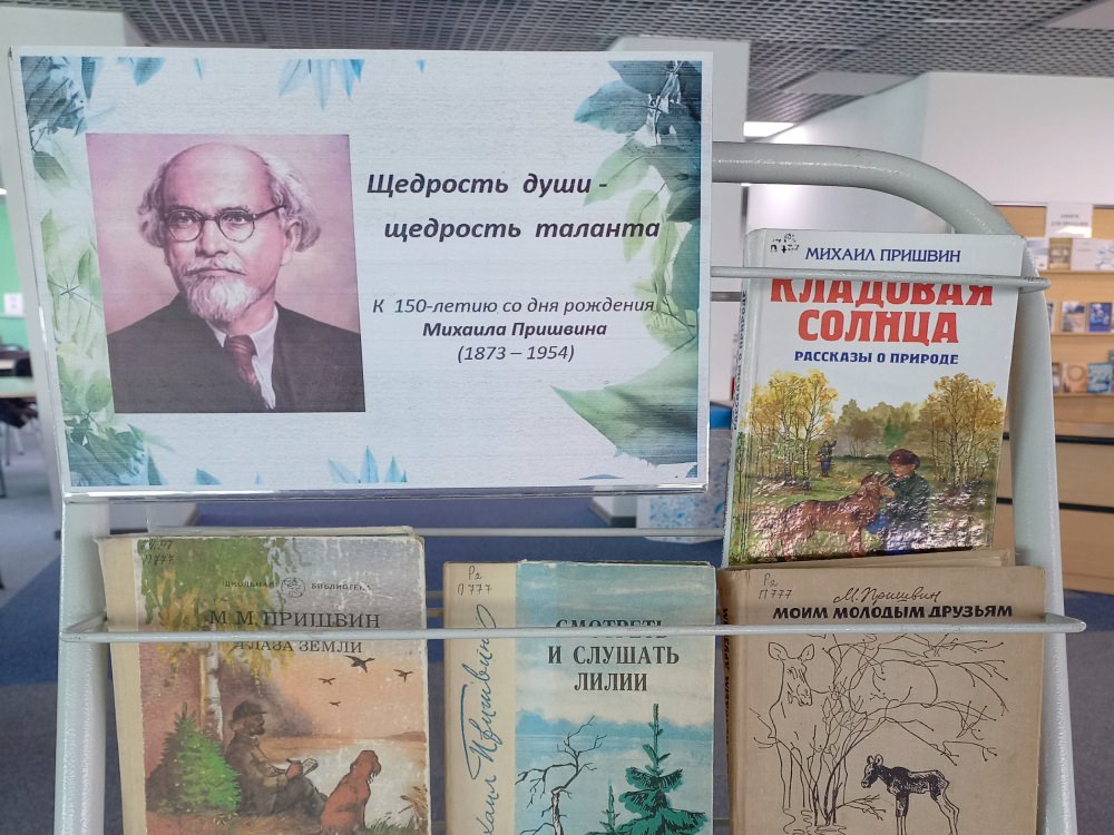 На выставке представлены издания о личности и творчестве писателя. Это книги жены Валерии Пришвиной, которая помогала ему в работе («Пришвин в Дунине», «Наш дом»), а также труды исследователей творчества публициста.