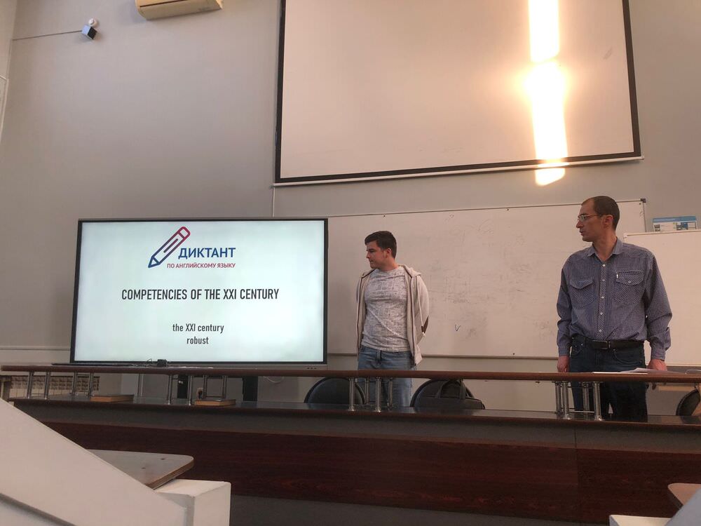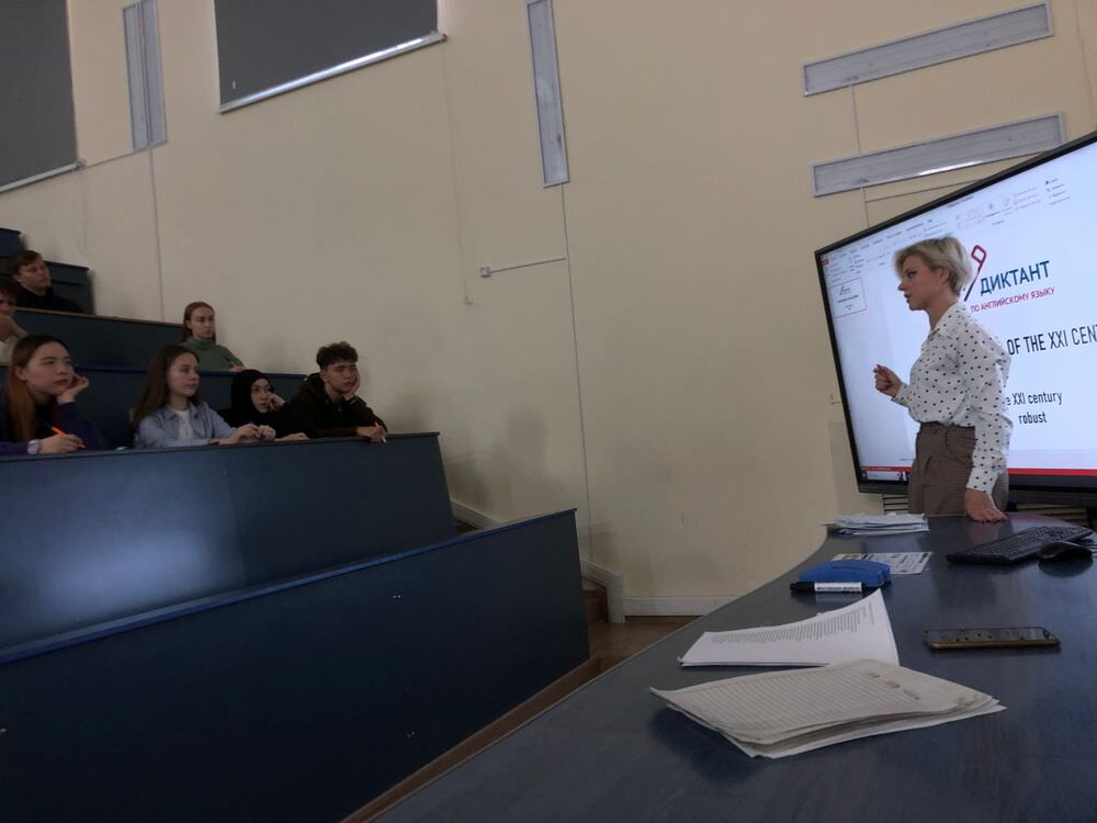 С экрана монитора участников поприветствовал первый проректор — проректор по научной деятельности Казанского федерального университета Дмитрий Таюрский. После инструктажа, который провели сотрудники кафедры английского языка и профессиональных коммуникаций АГУ — доцент Эдвард Глинчевский и ассистент Екатерина Шугаева, участники приступили к написанию диктанта. Он состоял примерно из 300 слов (14 предложений) и длился около получаса.