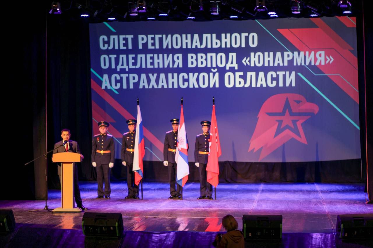 На торжественной части слёта с докладом о деятельности движения за прошедший год выступил начальник штаба регионального отделения «Юнармии» Астраханской области Павел Мамонтов.