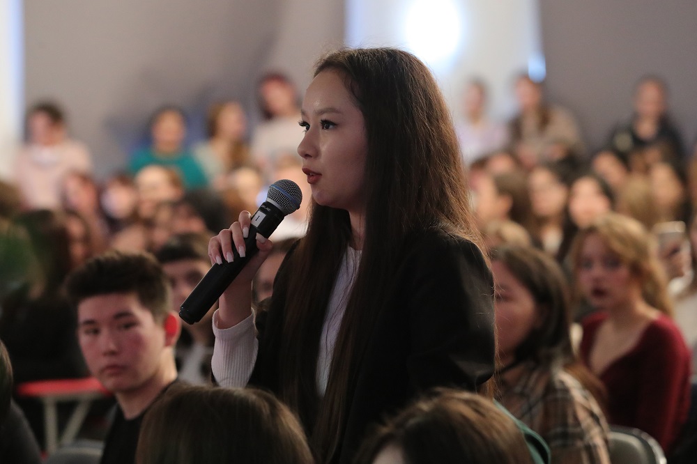 Некоторым студентам удалось задать интересующие вопросы о новых проектах, о том, как перестать быть стеснительным, а также о планах на будущее.