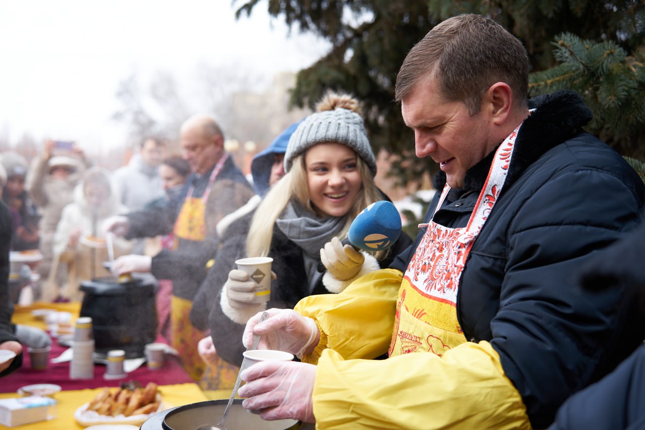Завершилась утренняя программа угощением гостей праздника оладушками с джемом и безалкогольным глинтвейном, который разливали Игорь Алексеев, Олег Полумордвинов и Эльдар Туишев.