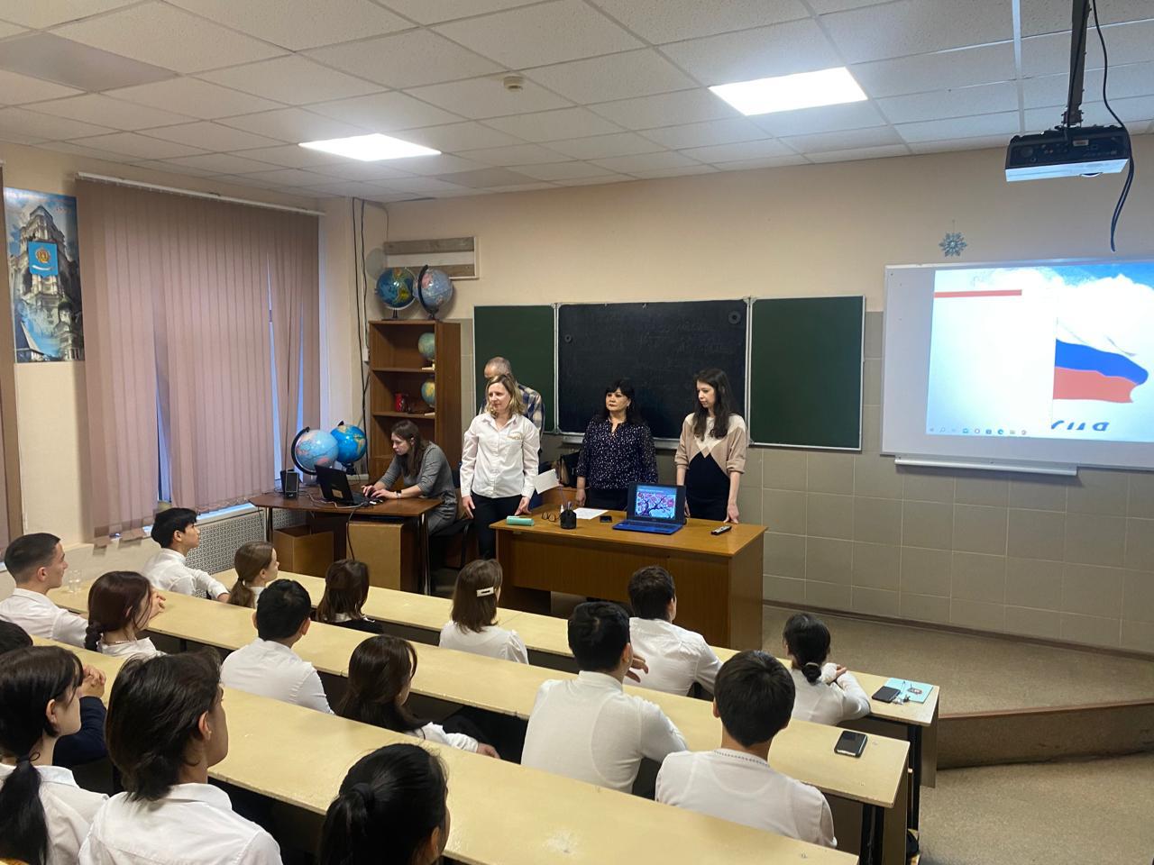 Доценты Мария Волкова, Юлия Беспалова и старшие преподаватели кафедры английского языка и профессиональных коммуникаций Зульфия Тастемирова и Анна Каликова рассказали учащимся об актуальности владения иностранным языком как одном из условий успешной адаптации в социальном пространстве.
